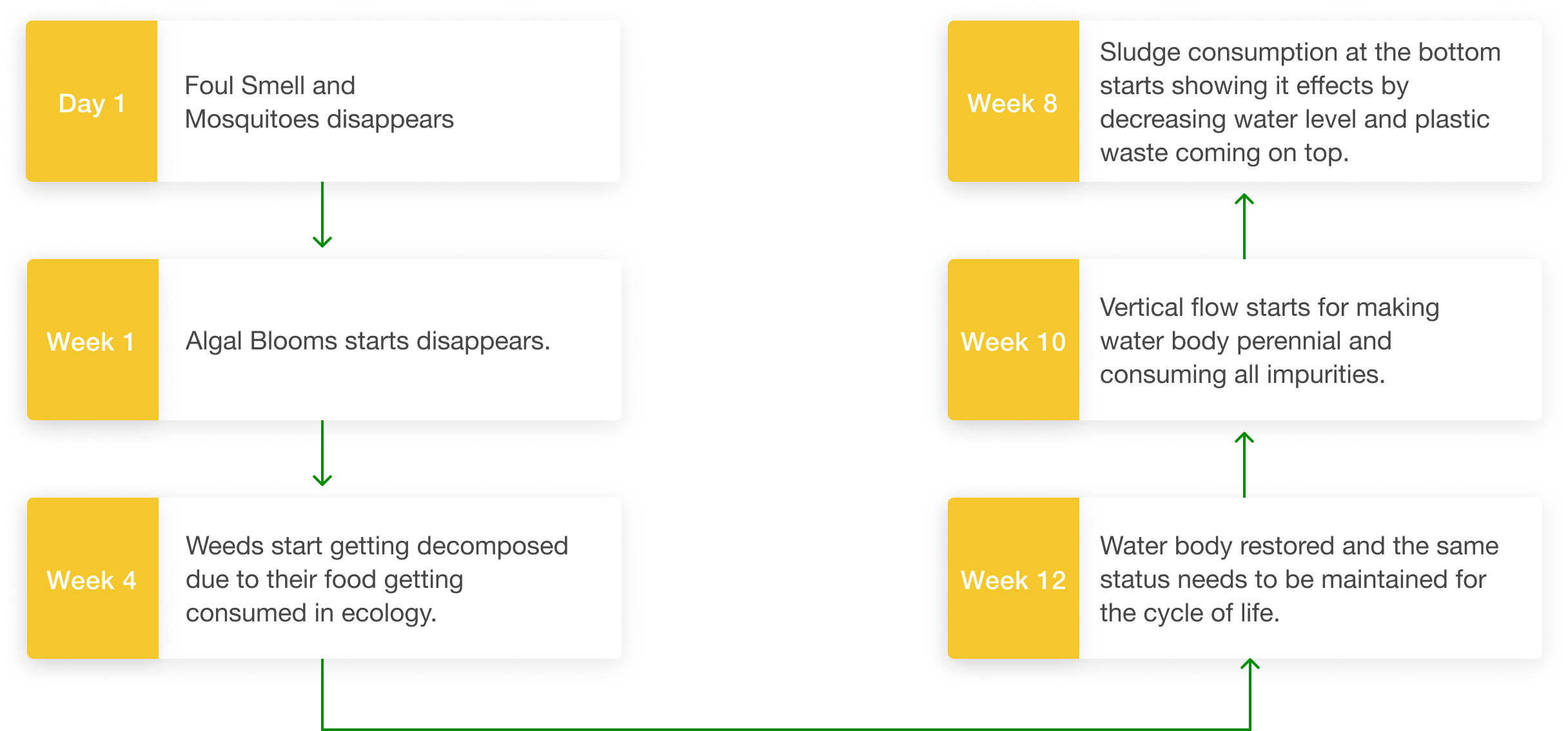 We want to represent our selves an Indigenous “Made in Bharat” Technology, for creating a Carbon Neutral World, with No Drought, No Sewage, No Floods, No Air Pollution and a Chemical Free Food Chain, by Rejuvenation of Inland Water Bodies In-Situ conditions. We developed new Technology from the knowledge we gained from our ancient texts and from our Rural Landscape, hidden in the form of common usage Adages. Our Plant based Potion neither contains any Synthetic Chemicals nor any Living Organisms in any form.
